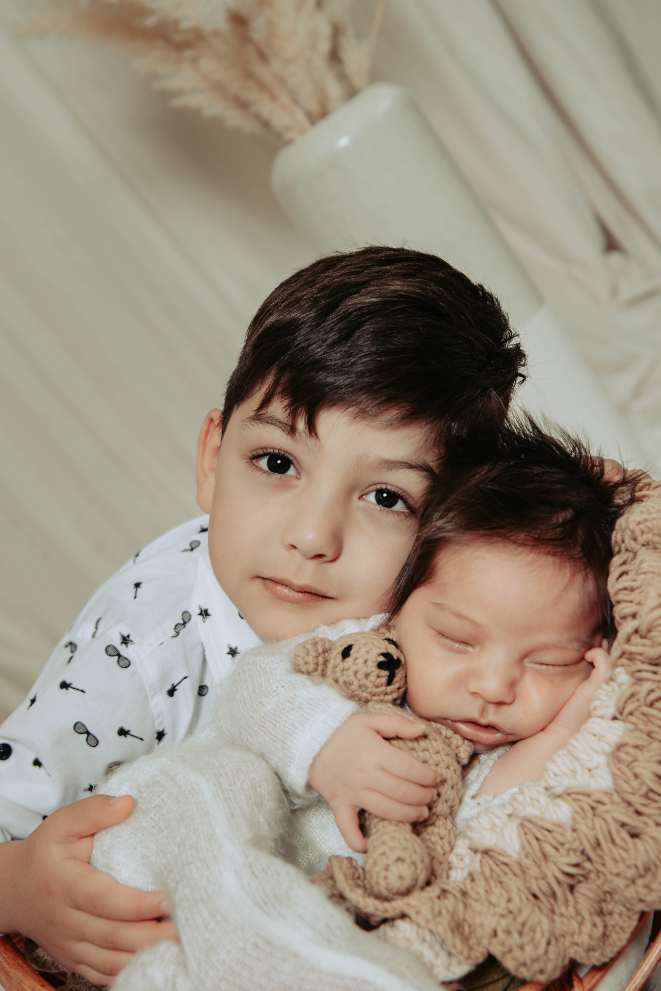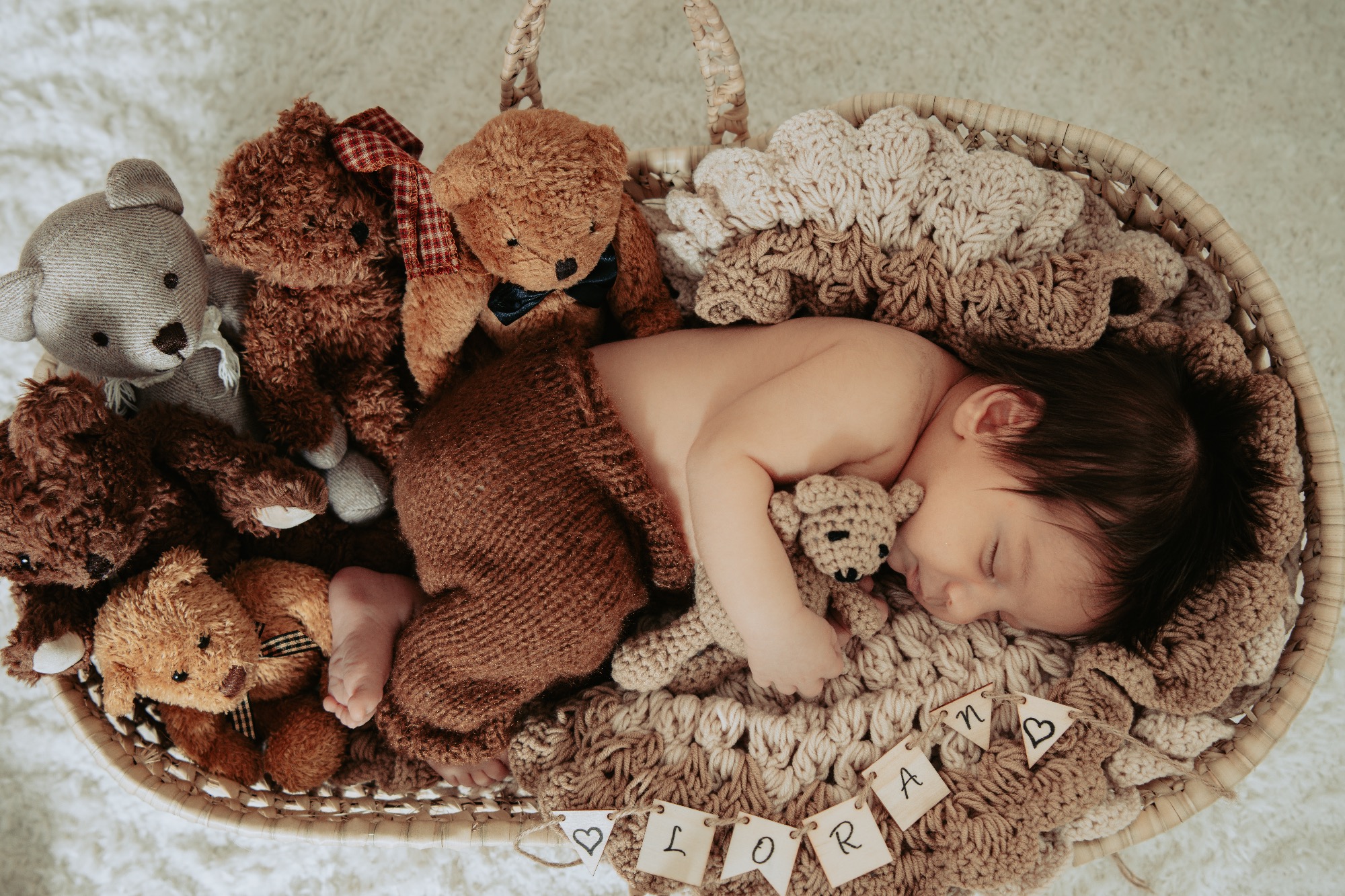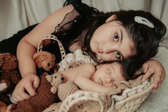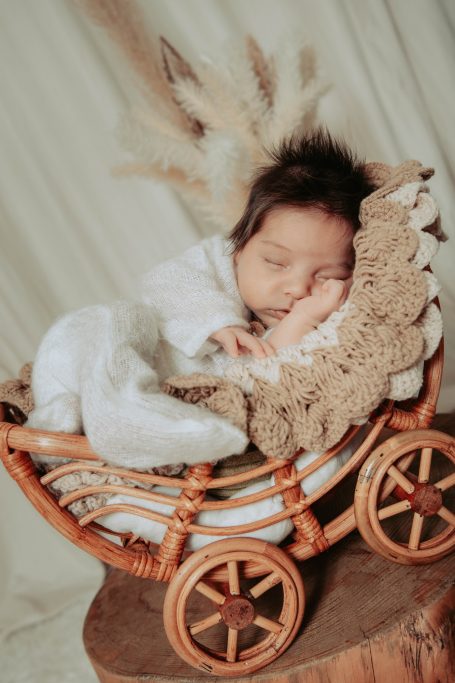 Familienfotos, Einzelportraits mit dem Baby, Geschwisterfotos, Einzelportraits vom Baby in Körbchen mit Accessoires.