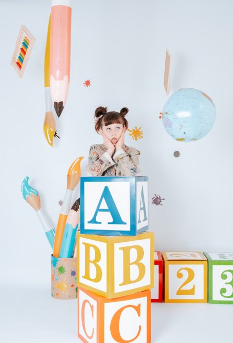 Ich biete mehrere individuell inszenierte Sets an – von zart und zeitlos über farbenfroh bis hin zu klar und reduziert – damit die Fotos die Persönlichkeit eures Kindes widerspiegeln.