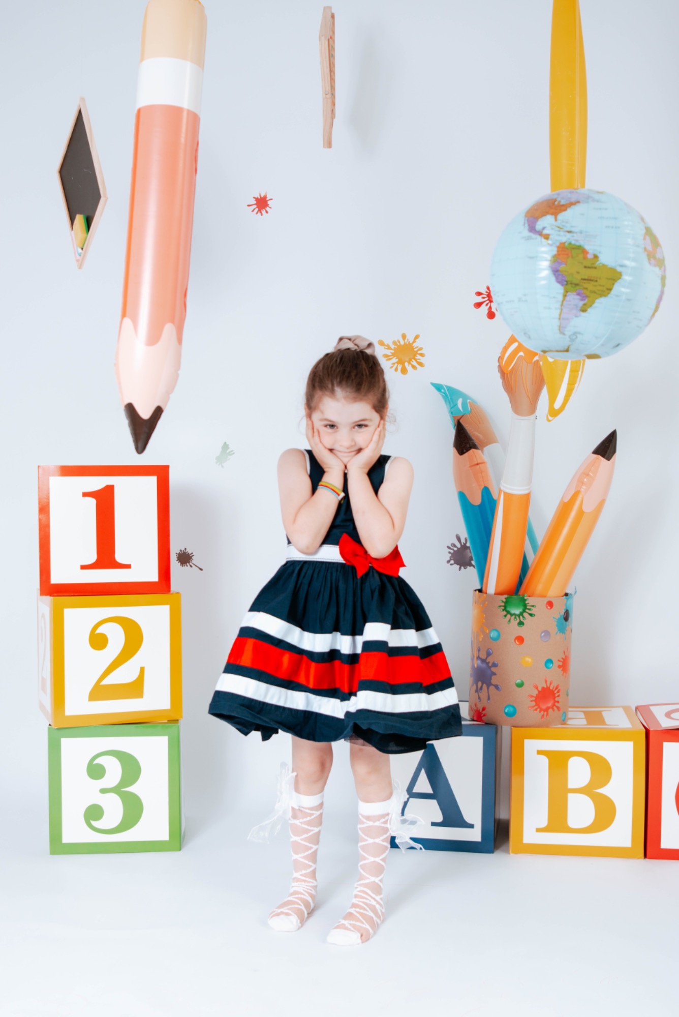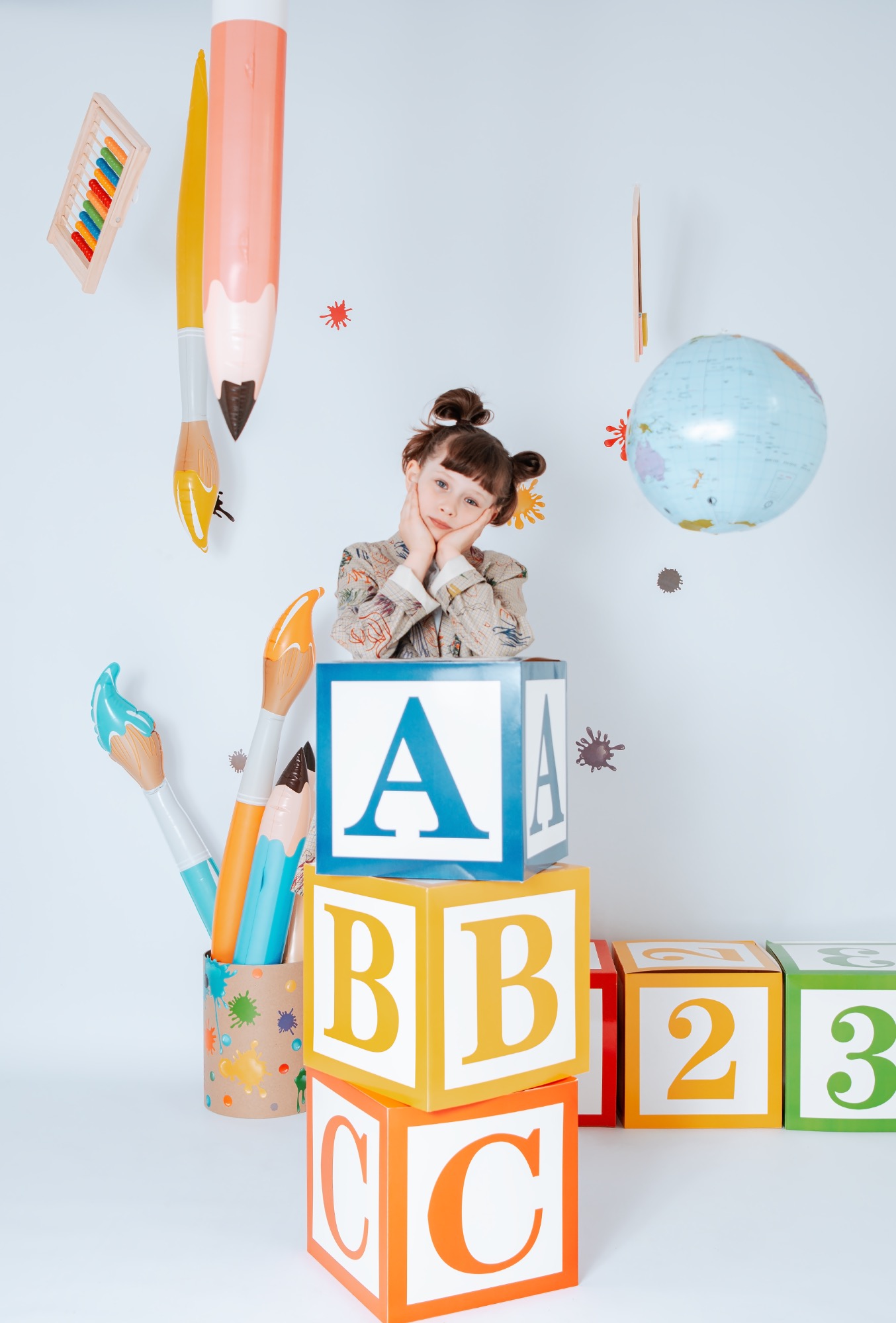 Ich biete mehrere individuell inszenierte Sets an – von zart und zeitlos über farbenfroh bis hin zu klar und reduziert – damit die Fotos die Persönlichkeit eures Kindes widerspiegeln.